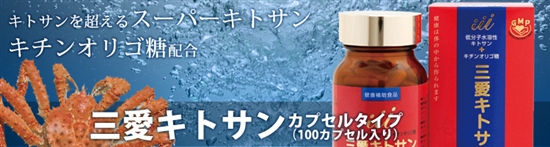 三愛製薬(株)が開発した商品は、キトサンの命である分子量構造を三愛製薬オリジナルとした低分子水溶性キトサンに、国内大手原料メーカーで製造特許を取得したキチンオリゴ糖を混合させ、他社に類を見ないキトサン商品となっています。